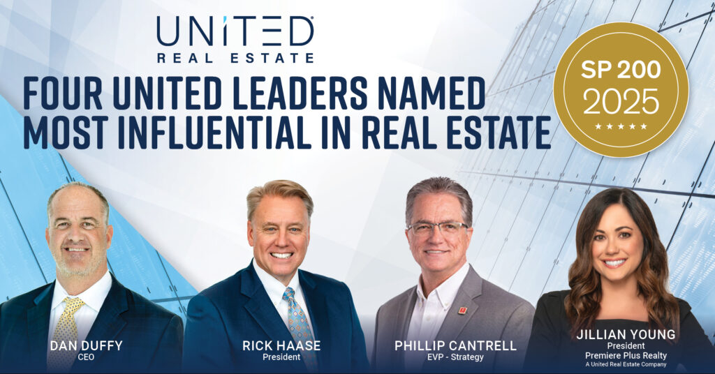 Leading the charge in United’s growth are key players credited for launching novel products and services for its 21,000+ agent base. Four United leaders were noted in the report: Chief Executive Officer Dan Duffy (ranked No. 14), President Rick Haase (ranked No. 61), Premiere Plus Realty President Jillian Young (ranked No. 144) and Benchmark Realty CEO Phillip Cantrell (ranked No. 163).